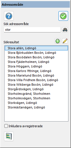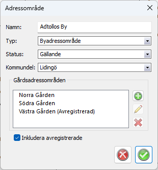 Du kan även inkludera avregistrerade gårdsadressområden i den här listan.
