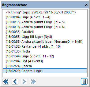 Ångrahanteraren ger dig möjlighet att se en lista på händelser som går att ångra. Klicka i listan för att ångra alla händelser som ligger under i listan.
