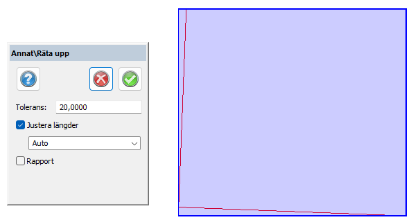 Endast vinklar inom toleransen rätas upp.