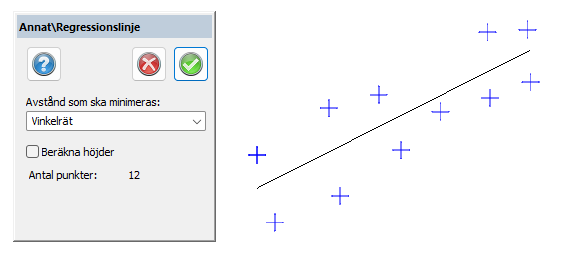 Kommando för att räkna ut regressionslinje enligt minsta kvadratmetoden. Summan av alla vinkelräta avstånd minimeras till det lägsta möjliga.
