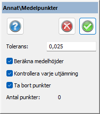 Finns val att man kan beräkna medelhöjder, kontrollera varje beräkning och om man vill ta bort punkter.