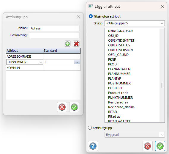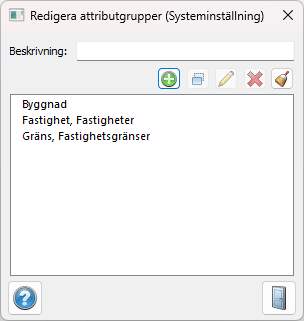 Attributgrupper är precis som det låter. En samling attribut, med eller utan defaultvärden, dessa attributgrupper används för att ange ett antal olika attribut på ett eller flera objekt, vare sig det är i mätdata eller i ritningen. Attributen kan anges med eller utan fördefinierade data.