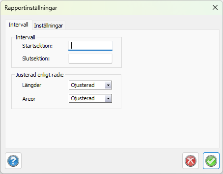 Beräkna sektioner | Inställningar | Rapportinställningar