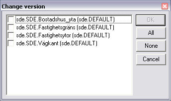 Kommandot tillåter versionsbyte av markerade lager. Alla ändringar av befintliga objekt tas bort och nya objekt påverkas inte.