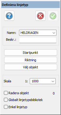 Om linjetypen ska skapas med en annan skala än vad ritningen är i kan man välja denna skala här.