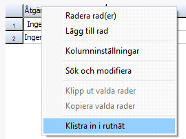 - Entré. Högerklicka på menyraden för lägenhetsgriddet och välj Klistra in i rutnät.