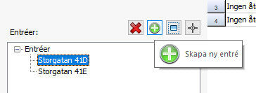 Obs! Den nya adressplatspunkten kan inte vara kopplad till en annan entré sedan tidigare, då en adressplatspunkt endast kan vara kopplad till en entré i taget.
