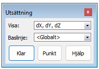 Fält Fält Utsättning Ritning | Övrigt | Fält | Utsättning Utsättning görs genom att markera punkt i ritningen. Vad som visas i displayen är antingen koordinater eller sektion/sidomått. Copyright © 2025 by Adtollo AB.