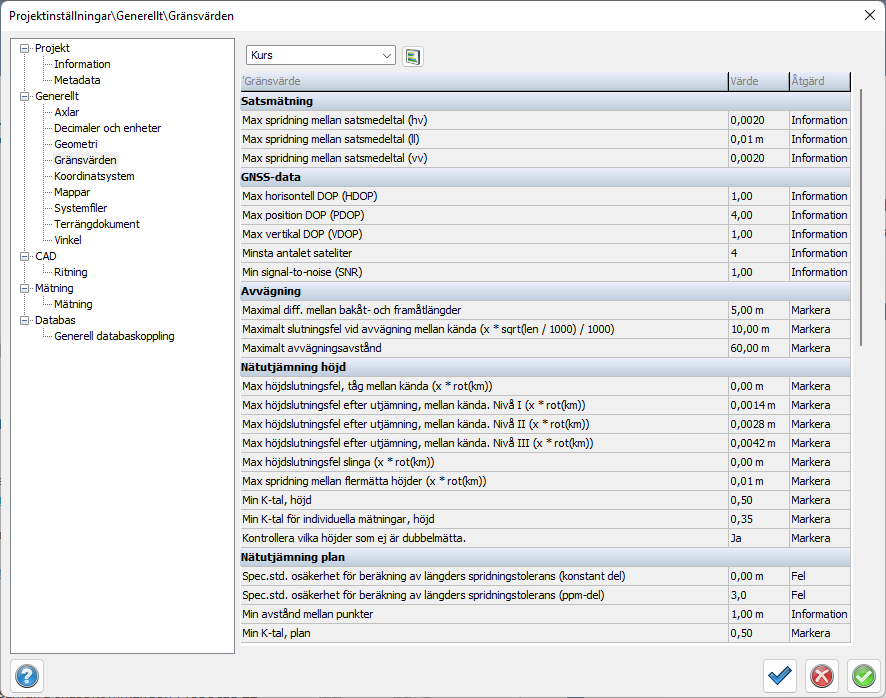 Hem | Systeminställningar/Projektinställningar | Gränsvärde
