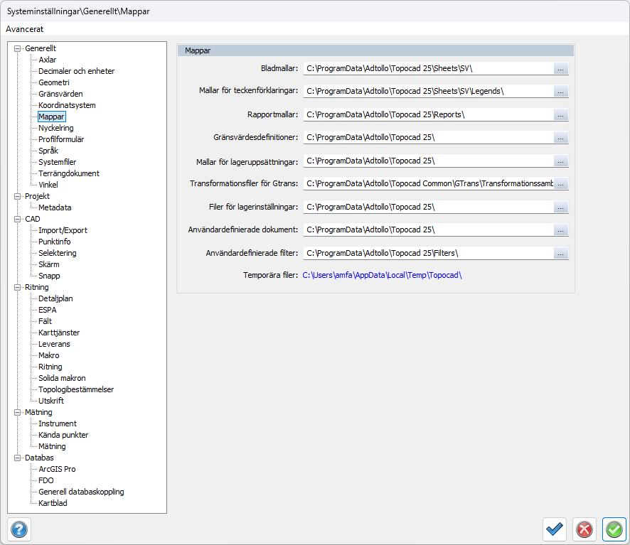 Förvalt värde är C:\Program\Adtollo\Topocad x.0\Templates\Sheets\