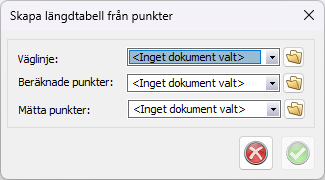 Observera att både väglinje och profil bör vara kopplad till en längdtabell. Varning ges annars. Om inte väglinje och profil är kopplade till samma längdtabell sker en varning. Det är dock fullt möjligt att ha olika längdtabeller för väglinje respektive profil.