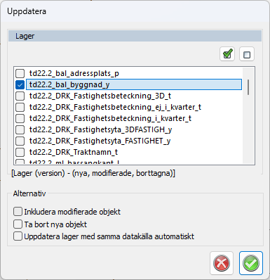 Funktion för att uppdatera ett eller flera lager. Om flera personer arbetar mot samma karta är detta en bra funktion för att uppdatera ett lager där någon annan har förändrat data i.