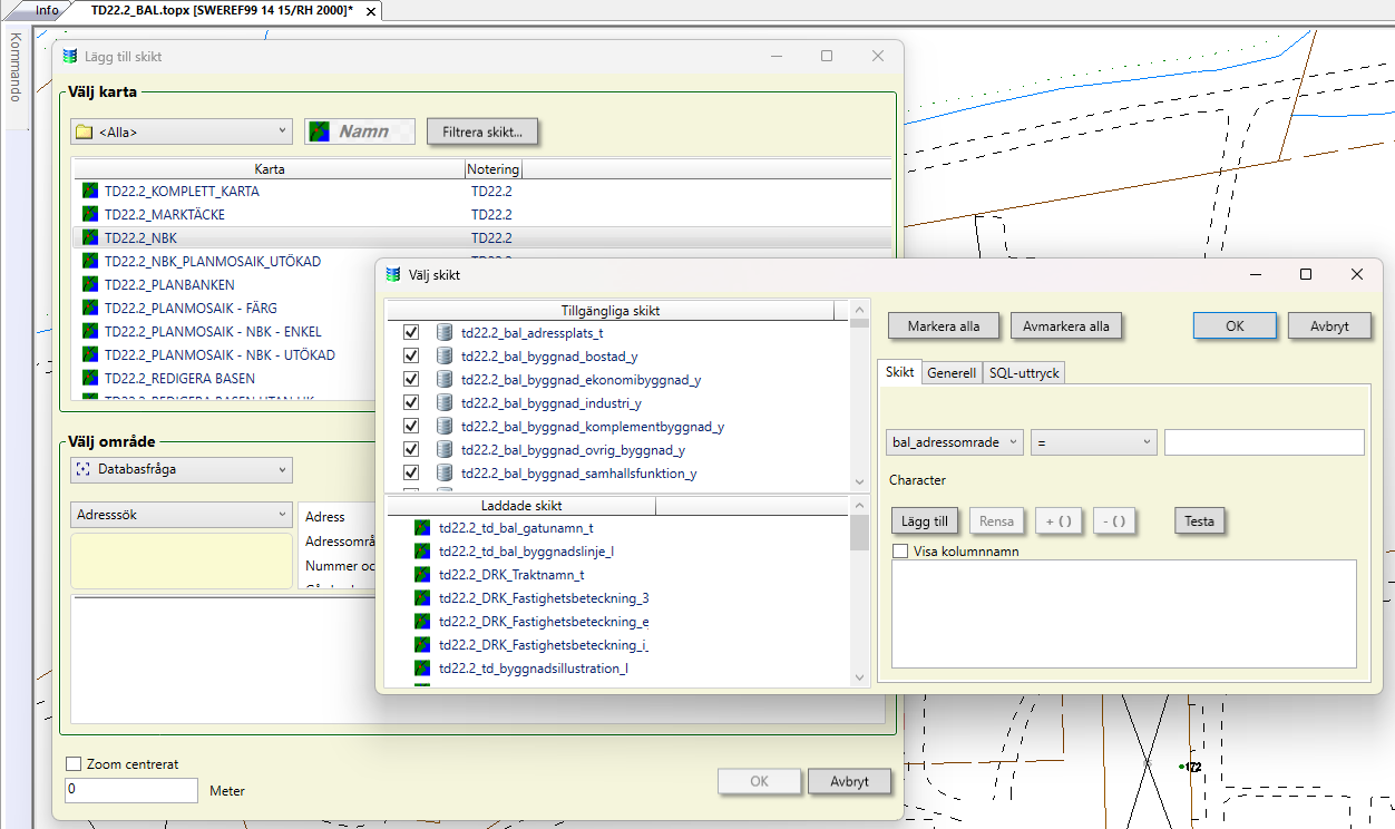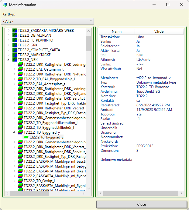 • Fråga på kartlager - Möjlighet att öppna ett område i kartan utifrån lager och dess attribut.