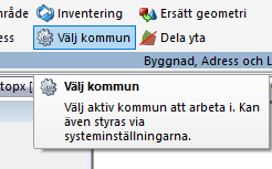 - Kommun: Välj vilken kommun man vill arbeta i, notera att adressområden m.m. är olika beroende på vilken kommun man väljer att arbeta i.