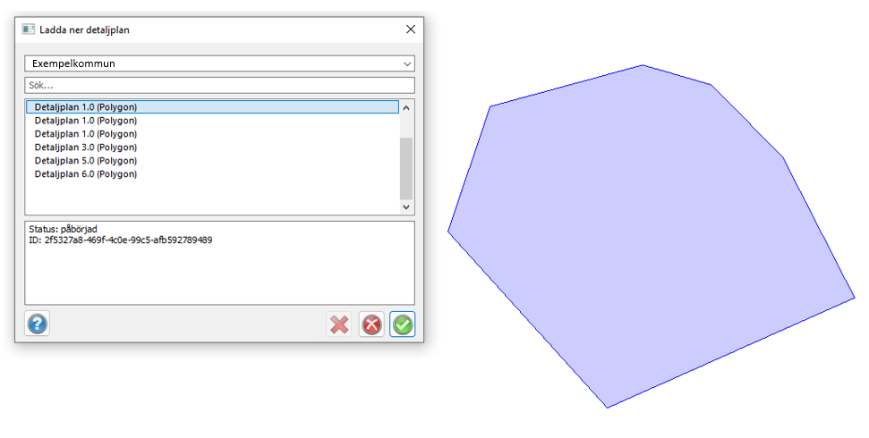 Kommandot Ladda ned låter dig hämta detaljplaner från Lantmäteriet.
