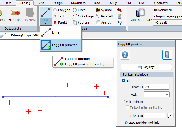 Ritning | Ritning | Skapa | Linje | Lägg till punkter