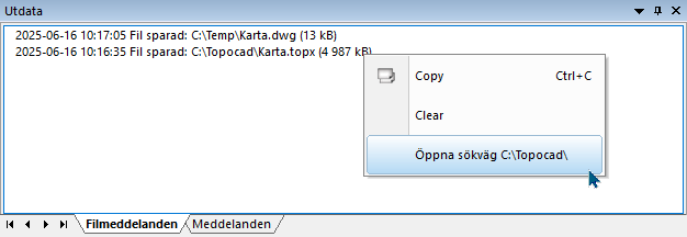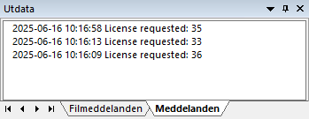 Här kan du se meddelanden från programmet. Under fliken Filmeddelanden kan du se meddelande om händelser för filer i programmet. Du kan se sökvägen var en fil har sparats och om du högerklickar på raden har du möjlighet att öppna sökvägen för filen.