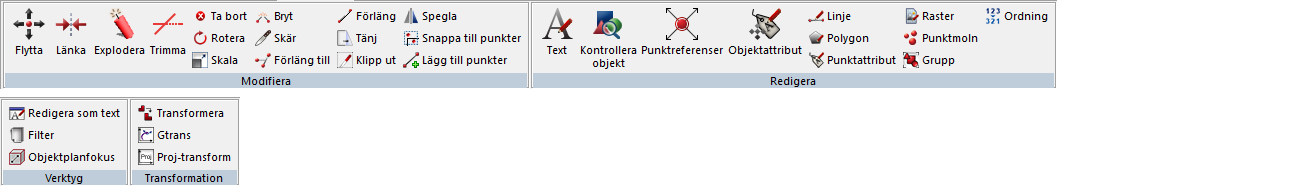 Ritning Modifieramenyn Modifiera Modifiera Ett flertal av dessa kommandon återfinns även under Ritningsmenyn - Modifiera. Modifiera Flytta objekt Länka Explodera Trimma Ta bort Rotera Skala Bryt Förläng till Förläng Tänj Klipp ut Spegla Snappa till punkter Redigera Text Kontrollera objekt Punktreferenser Objektattribut Linje/Polygon Punktattribut Raster Grupp Ordning Verktyg Redigera som text Filter Transformation Transformera Gtrans Proj4 Copyright © 2025 by Adtollo AB.