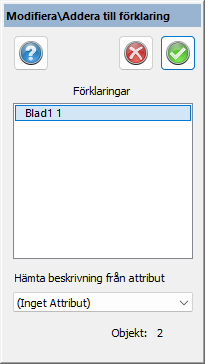 Välj förklaring, i detta fall Blad 1, och klicka på klar.