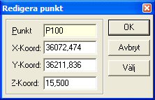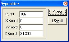 Nya punkter kan direkt anges i nätutjämningen. Om du vill använda punkter från ritningen kan du importera dessa via kommandot "Importera kända punkter" men redigera dessa i fliken "Punkter" så att de ej är kända i en eller två plan.