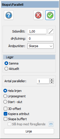 Välj om du vill att den parallella linjen ska placeras i samma lager som linjer du utgår ifrån eller i aktuellt lager.