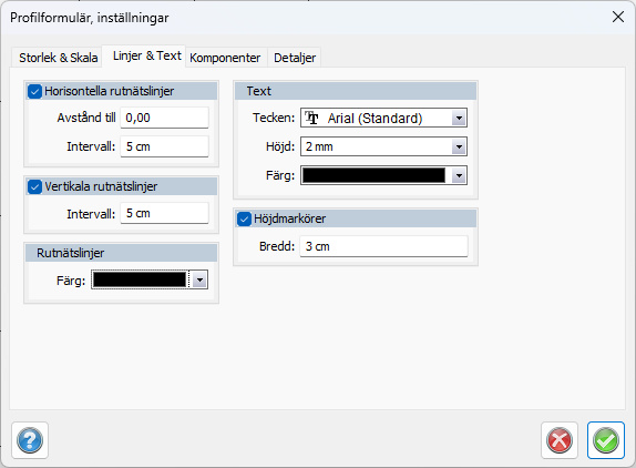 Nyckelord: Profilformulär - skala, Profilformulär - färger, Vertikala linjer i profilformulär, Horisontella linjer i profilformulär