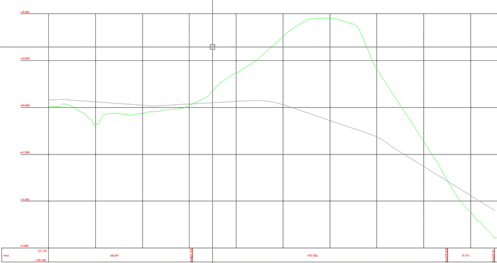 Väglinjen ritas ut som ett streck med omgivande höjder och objekt redovisat. Inmätta objekt bredvid väglinjen, som en korridor runt väglinjen, redovisas i profilformuläret.