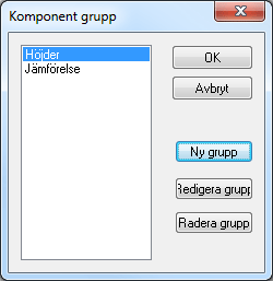 Gruppen kan skapas. För att lägga till en komponent till gruppen, markera komponenten i listan, klicka "Ställ in grupp" och därefter väljer du grupp.