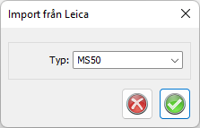 Öppna dokument Punktmoln och välj LEICA. Välj sedan instrumenttyp MS50 (Multistation 50).
