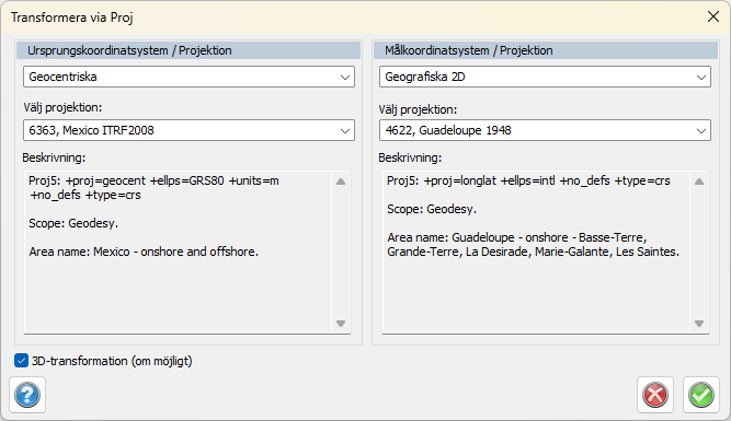 Kommandot transformerar ett punktmoln med hjälp av Proj4.