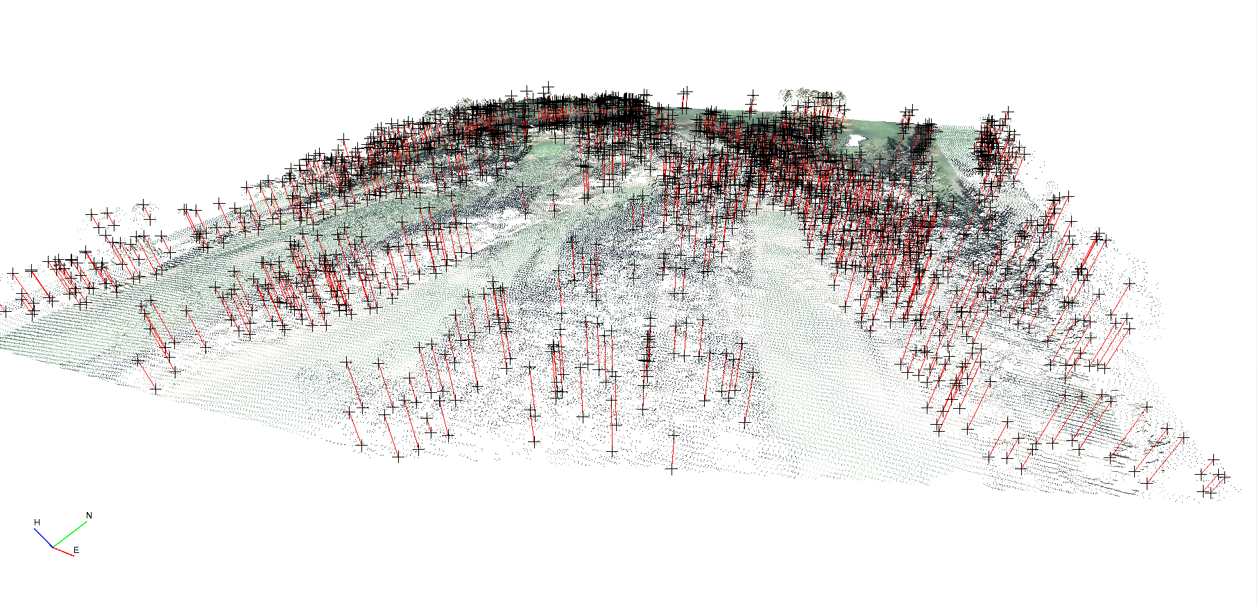 Kommandot söker trädtoppar, och skapar linjer från botten till toppen för varje hittat träd i vald ritning.