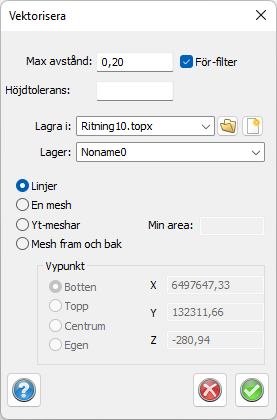 Max avstånd anger största avstånd mellan punkter i punktmolnet som används vid vektoriseringen.