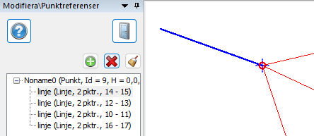 Funktion för att redigera en punkt eller nodpunkt och dess referenser. Man kan lägga till eller ta bort en eller flera referenserna samtidigt. Fungerar på både polygoner och linjer.
