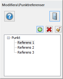Ta bort referens: Klicka på en punkt på kartan, klicka sedan på krysset för att ta bort en punkt i taget alternativt kvasten för att radera alla referenser samtidigt.