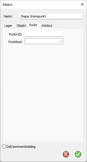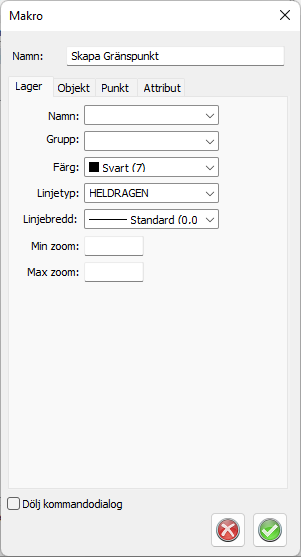 Ange vilket namn makrot ska ha, t ex Skapa Gränspunkt. Detta makro använder kommandot skapa punkt.
