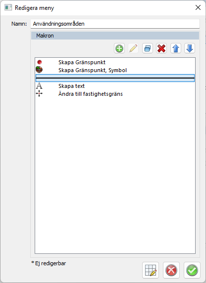 Ange vilket namn makrot ska ha, t ex Ändra till fastighetsgräns. Detta makro använder kommandot Modifiera Flytta.