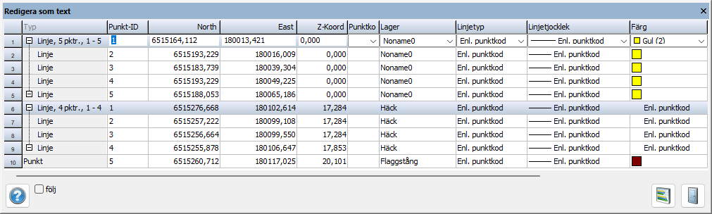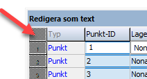 Klicka på Punkt ID eller annan rubrik för att sortera på denna.