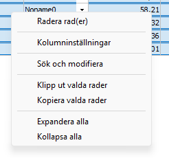 För att kopiera eller klippa ut rader från till exempel redigera som text eller ett annat liknande dokument kan du klicka uppe i vänstra hörnet för att markera allt. Därefter kan du högerklicka för att få upp en meny där val finns för kopiera och klippa ut.
