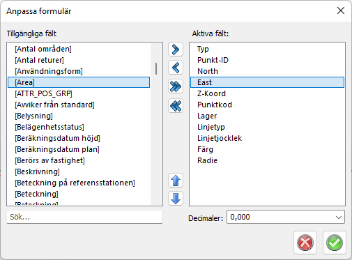 Högerklicka på tabellen och välj Komulmninställningar för att redigera din tabell. Välj vilka fält som ska vara aktiva, samt hur många decimaler som ska visas i varje fält.