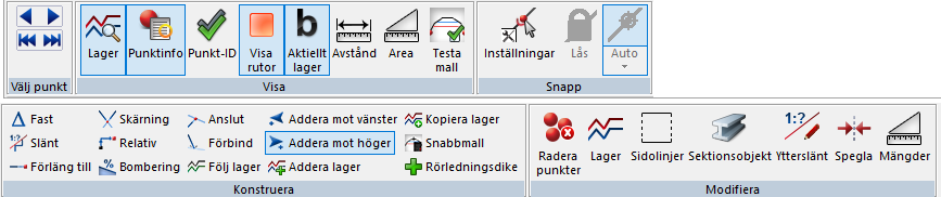 I sektionsmallen finns två verktygsboxar. Visa punktegenskaper och visa lager. Dessa verktygsboxar tänds och släcks här. |