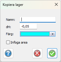 Kopierar markerat lager. Ange ett sidoffset uppåt/neråt jämfört med det lager du står på. Ange färg och namn samt välj om du vill infoga area.