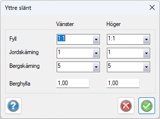 Här kan inställningar för ytterslänt i förenklat utförande kan anges.