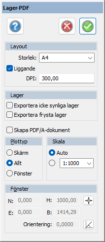 Fönster: Välj en exakt yta genom att fylla i koordinaterna eller klicka direkt i ritningen.