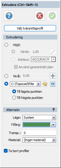 - Ett värde i höjd från den valda tvärsnittsprofilen.