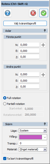 Med denna funktion roterar du ett tvådimensionellt objekt runt vald axel och skapa en 3D-solid av dess rotation. Rotationen kan vara 360 grader eller delar av ett varv.