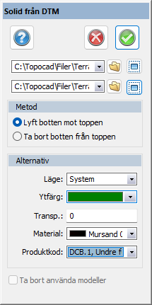 Skapar solid från två terrängmodeller. Använd två terrängmodeller och skapa en solid mellan dessa. Det skaps vertikala väggar mellan modellerna.