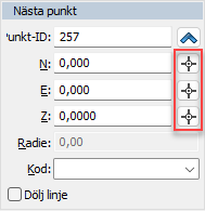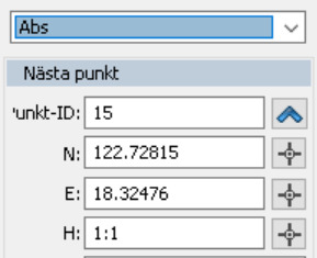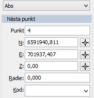 Med hjälp av knapparna till höger om koordinaterna, eller lokala koordinater alternativt längd, vinkel om detta har valts kan man välja koordinater, längder, vinklar för nästa punkt.