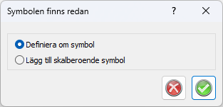 Symbolutseende kan göras beroende av aktuell ritningsskala. Vid skapande av en symbol som redan existerar kommer en fråga om symbolen ska definieras om eller om symbolen ska läggas till befintlig symbol. Om symbolen ska läggas till befintlig symbol visas en dialog med symbol samt vilken ritningsskala symbolen ska visas i.