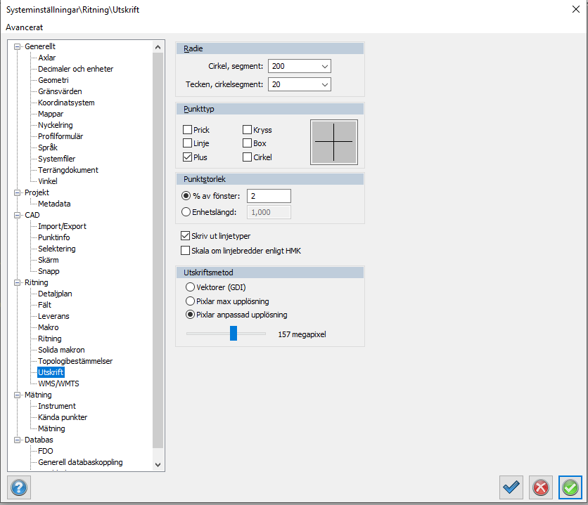 Skriv ut som med ett pixelbaserat format med anpassningsbar upplösning. Detta ställer du in under Systeminställningar > Ritning > Utskrift > Utskriftsmetod.