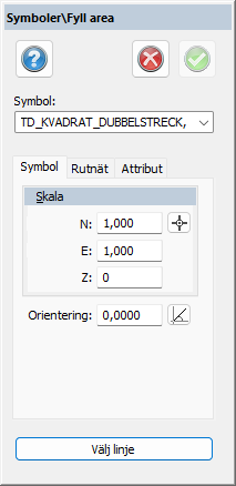 Där anges start origo, orientering för själva fyllnadsytan respektive med vilket mellanrum som symbolen skall läggas in i ytan.
